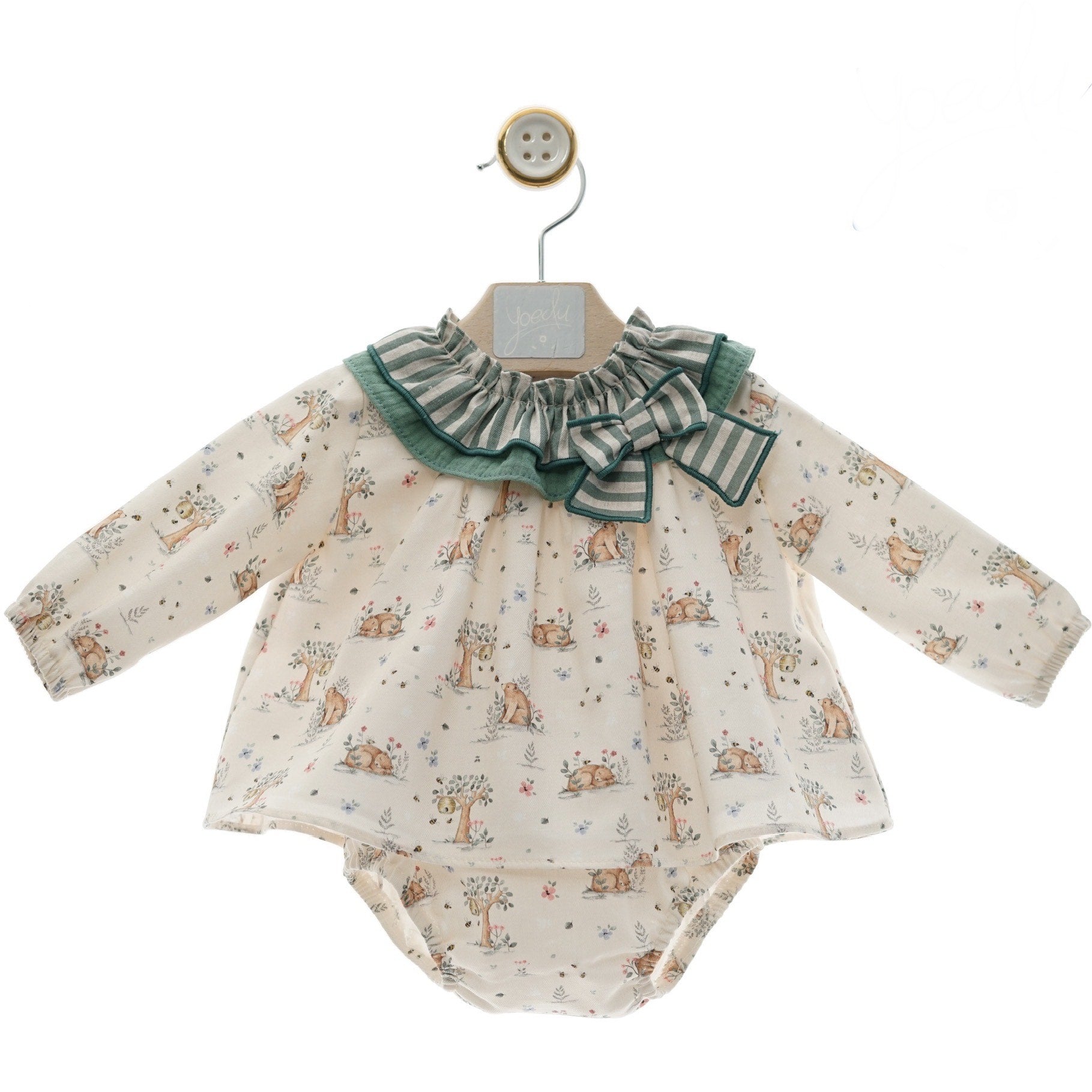 Dress your little one in cozy charm with this Autumn baby dress, featuring a delicate collar and adorable cotton animal appliqués. Crafted from soft, breathable fabric, it ensures comfort during cooler days while adding a playful touch to your baby's wardrobe. Perfect for seasonal outings or family gatherings, this dress combines warmth and style effortlessly.