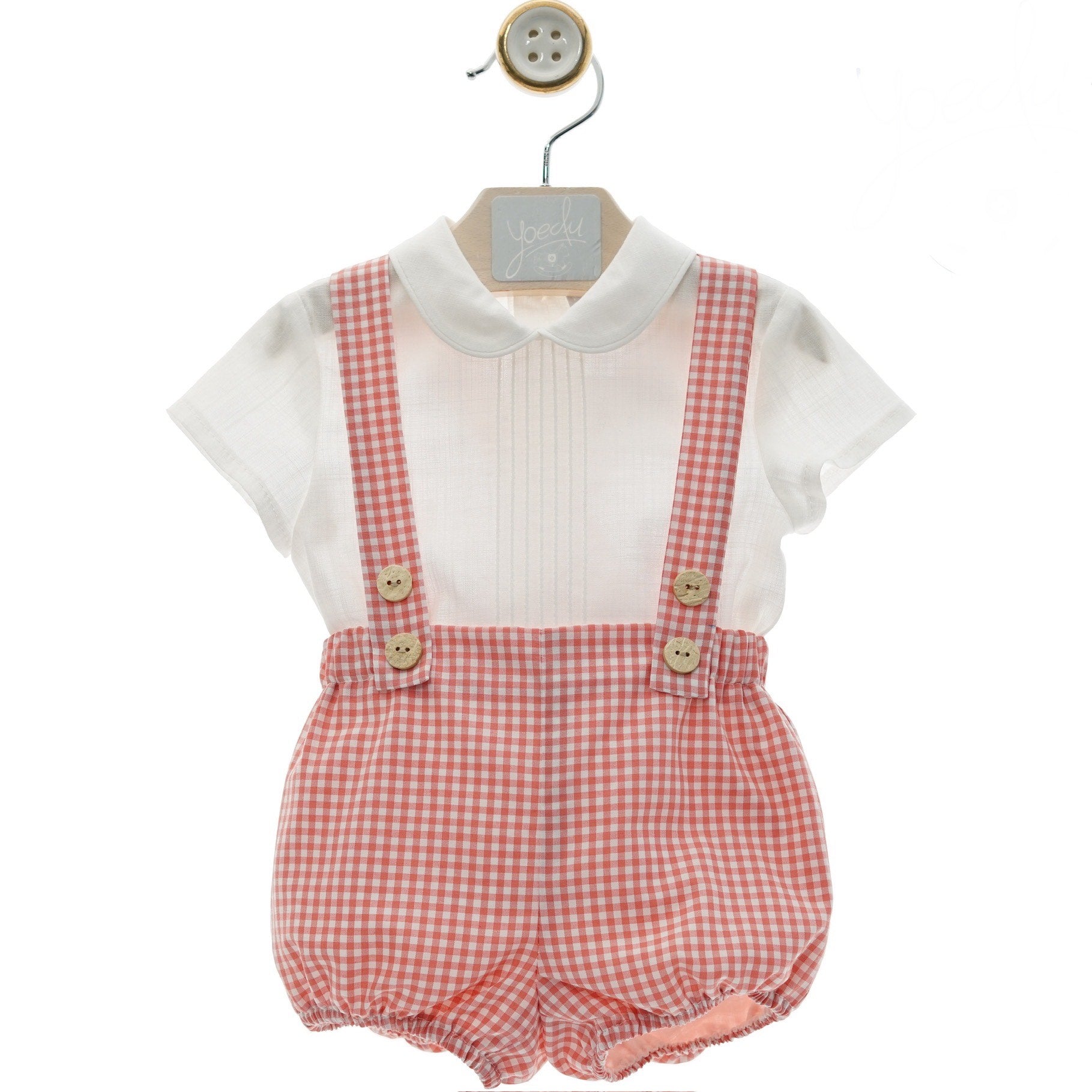 Elevate your little one's style with our charming Baby Set featuring adorable shorts with suspenders paired with a crisp white shirt. This versatile ensemble combines comfort with classic appeal, making it perfect for special occasions, photo sessions, or everyday outings. The suspenders add a touch of vintage charm while ensuring the shorts stay perfectly in place as your baby explores the world.