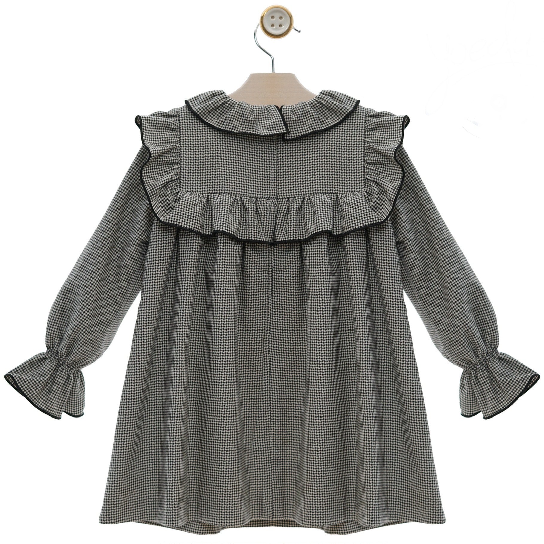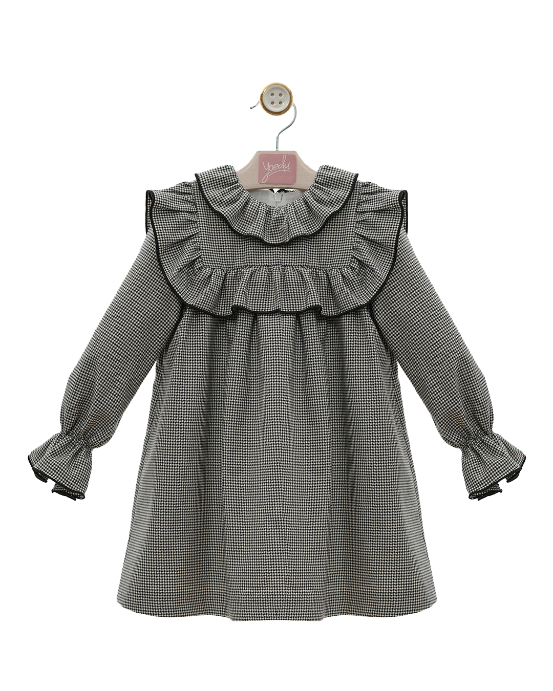 Add a touch of playful elegance to your child's wardrobe with our black and white ruffled dress. Made with soft and breathable cotton, this dress is perfect for any occasion. Let your child's unique personality shine through with this stylish and comfortable piece!