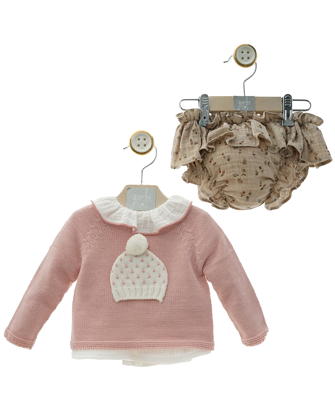 Keep your little one cozy and stylish with this charming pink sweater set, complete with a matching hat. Crafted for warmth and comfort, this set is perfect for chilly days, offering both softness and a snug fit. The coordinated hat adds an adorable touch while protecting against the cold. Ideal for everyday wear or special outings, this set combines practicality with sweet, timeless style.