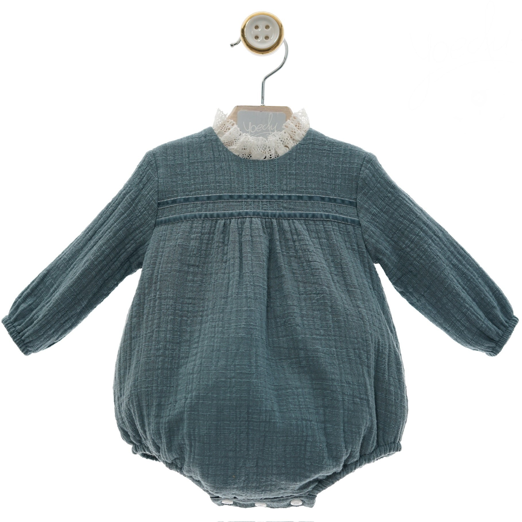 Experience timeless elegance with the Old Blue Bodysuit, crafted entirely from soft, breathable cotton for all-day comfort. Its vintage-inspired blue shade and delicate lace details add a touch of sophistication, making it perfect for both casual and dressy occasions. Elevate your wardrobe with this unique blend of classic style and modern comfort.